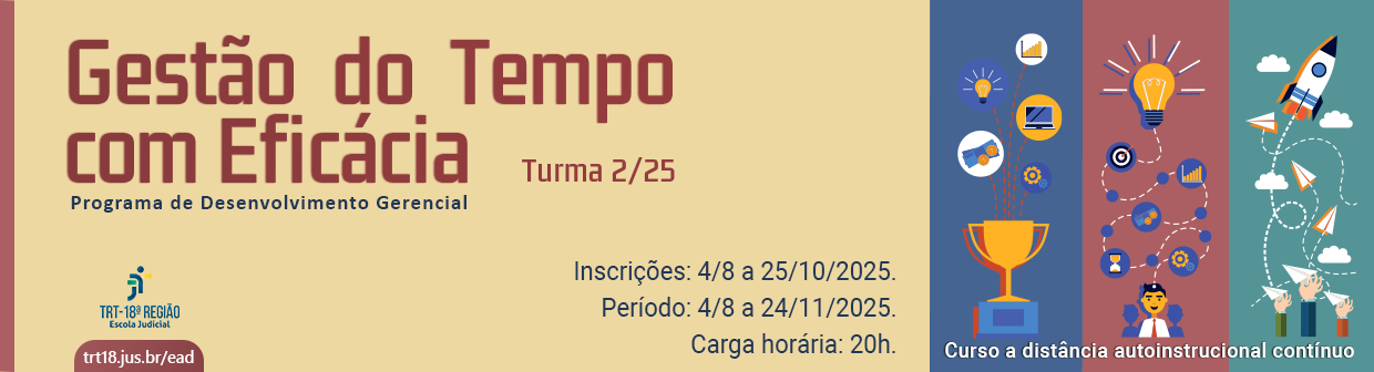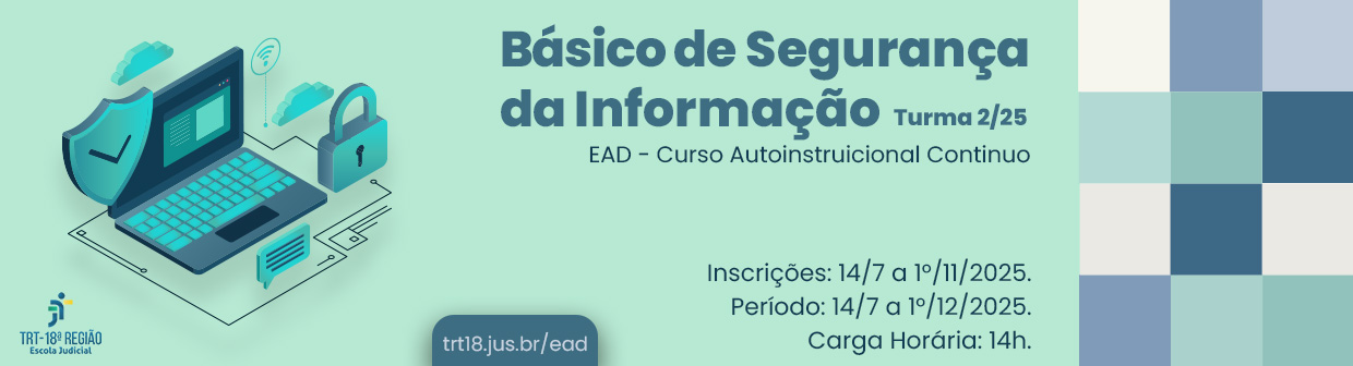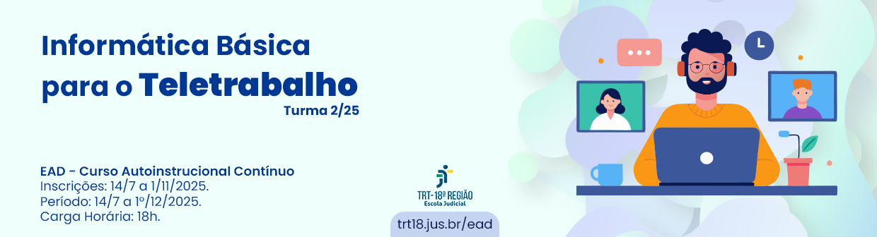 O TRT18 realiza todos os esforços para garantir que as informações contidas neste site estejam corretas. O Tribunal não se responsabiliza pela perda ou dano de qualquer conteúdo do aluno. Por favor, mantenha sempre um backup de quaisquer trabalhos/arquivos. O Tribunal não endossa ou aprova o conteúdo de qualquer site de terceiros, nem terá qualquer responsabilidade em relação a qualquer um deles.