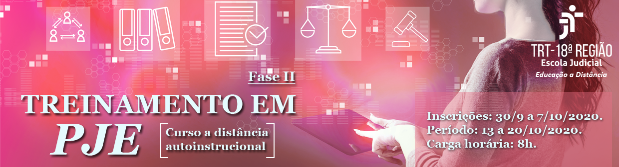 Objetivo: prover treinamento relativo à utilização dos principais recursos do PJE.