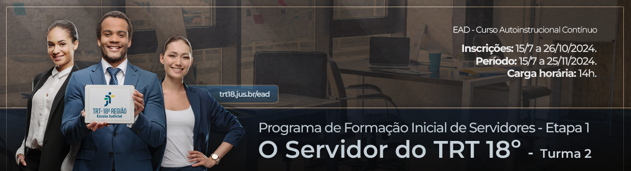 Objetivo: prover treinamento inicial aos novos servidores ingressantes no Tribunal, visando ao desenvolvimento das competências básicas necessárias para o desempenho de suas atividades.