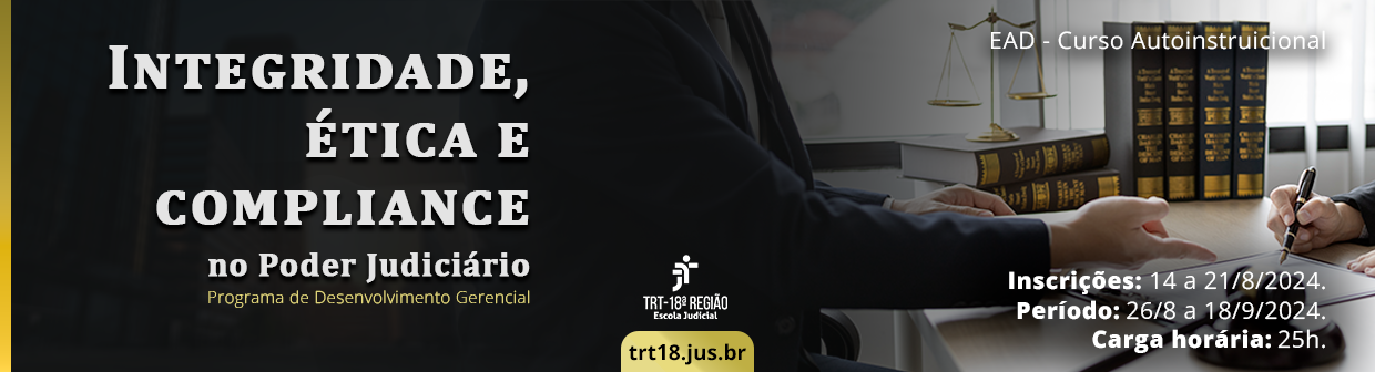 Objetivo: conscientizar o corpo funcional do Poder Judiciário sobre os conceitos de ética, integridade e compliance, os riscos à integridade e a estruturação de programas de integridade.