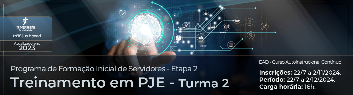 Objetivo: prover treinamento relativo à utilização dos principais recursos do PJE.