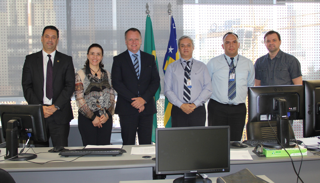 Equipe da 17ª VT de Goiânia com o desembargador-corregedor, Breno Medeiros, e o diretor da Secretaria da Corregedoria Regional, Marcelo Marques
