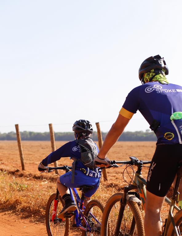 Paisagens exuberantes do trajeto e os ciclistas incansáveis, sob sol, poeira, vento, mas muita disposição para concluir o passeio