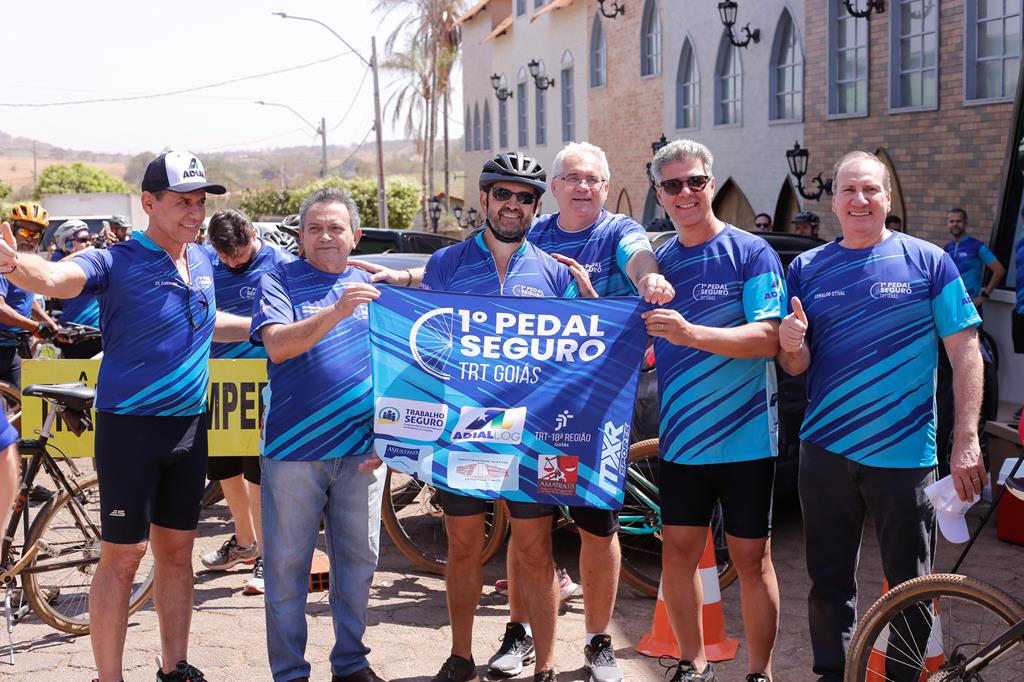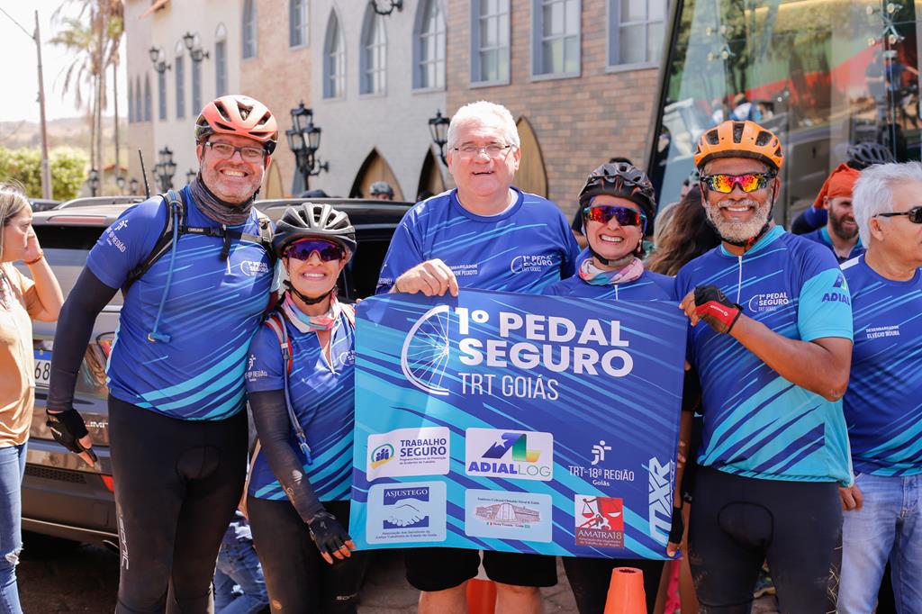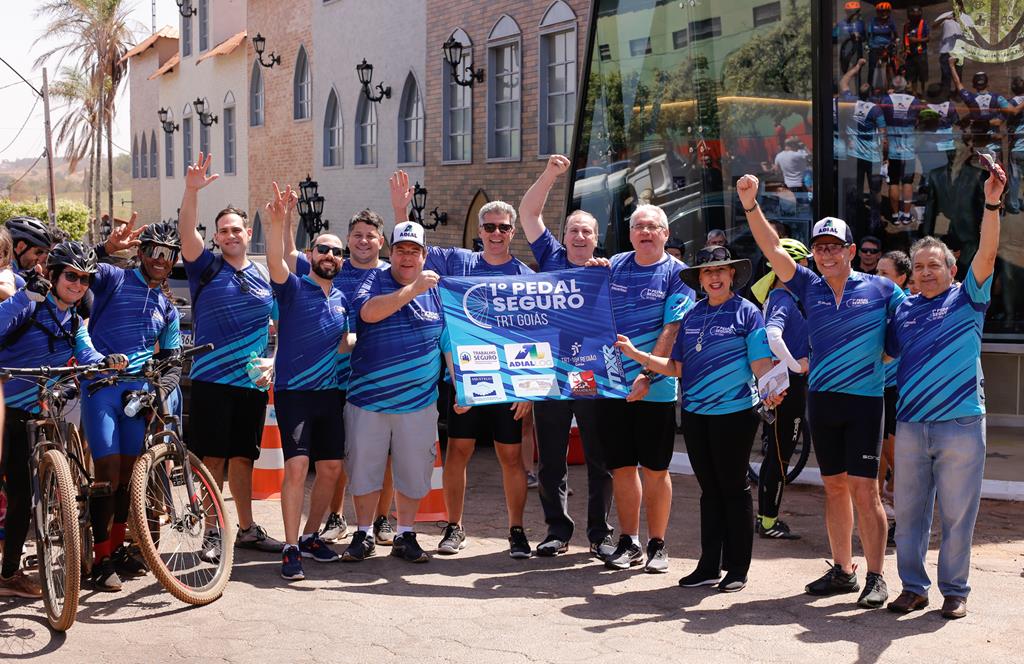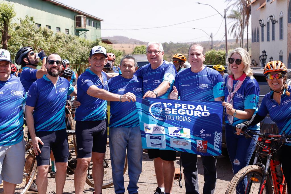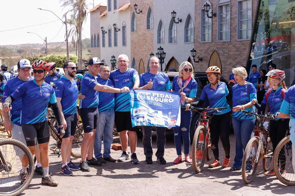 Um dia de aventura, esporte, saúde e muita conversa sobre a importância da prevenção de acidentes de trabalho. O pedal reuniu magistrados, servidores, advogados, funcionários terceirizados, empresários e atletas que acordaram cedo para seguir viagem. O ponto de partida foi o Fórum Trabalhista de Goiânia. Com as bikes a postos, capacete e equipamentos de proteção, cerca de 70 ciclistas percorreram mais de 60 quilômetros rumo a Nova Veneza.