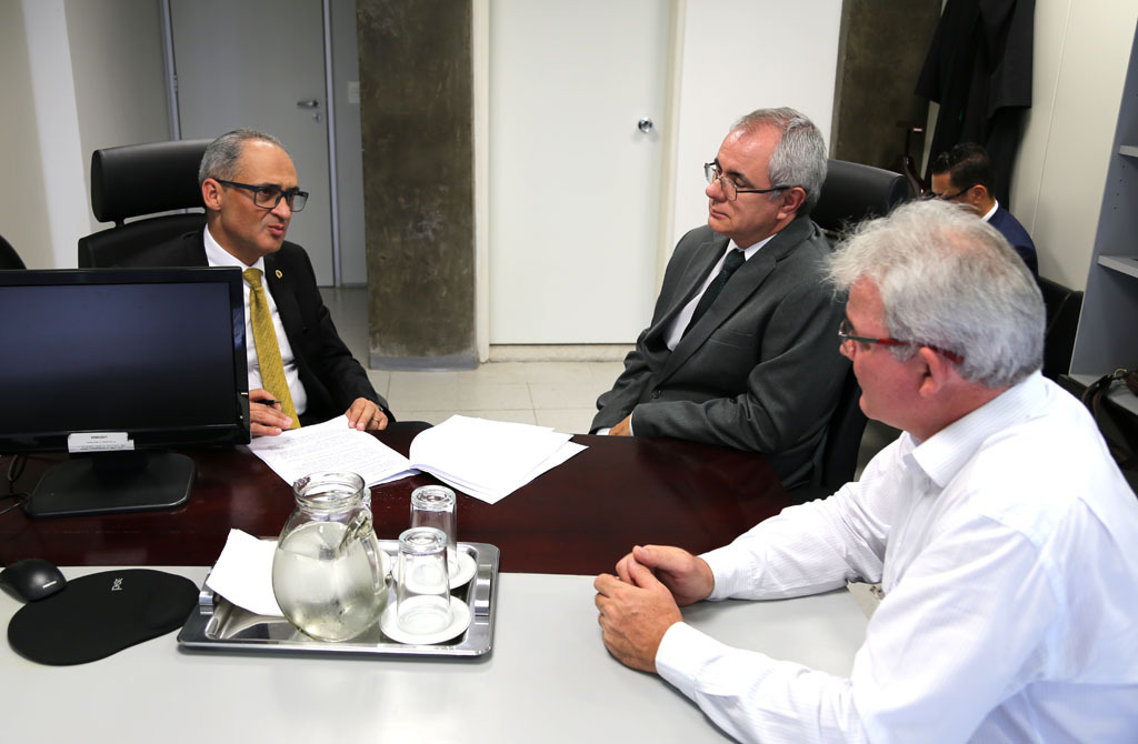 Corregedor Paulo Pimenta com o juiz João Pereira e o diretor de secretaria da 5ª VT Marcelo Tertuliano