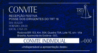 Advogados e demais interessados já podem adquirir os convites para recepção de cumprimentos dos dirigentes do TRT 18 (Biênio 2019/2021)