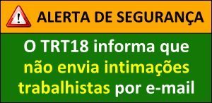 Você já recebeu uma mensagem de e-mail na qual o Tribunal Regional do Trabalho da 18ª Região faz uma intimação para comparecimento em audiência? Cuidado! Internautas mal intencionados podem estar tentando acessar suas informações pessoais. O número de pessoas que recebem esse tipo de mensagem é cada vez maior.