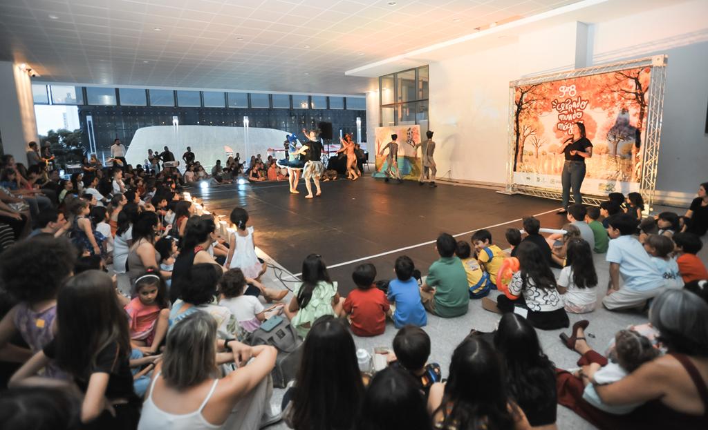 A Praça do Tribunal Regional do Trabalho de Goiás (TRT-GO) foi palco de um fim de tarde de encantamento e conscientização na última sexta-feira, 17 de outubro. Dezenas de crianças, acompanhadas dos pais ou responsáveis, assistiram ao espetáculo de dança contemporânea e teatro infantil “Cerrado Mundo Mágico”, da companhia Giro 8, que integrou a programação especial de Dia das Crianças do tribunal.