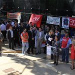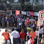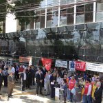 Entidades que compõem o Fórum goiano em defesa da Justiça do Trabalho realizaram, na manhã desta quinta-feira (21/7), um ato público em favor da recomposição orçamentária do Tribunal Regional do Trabalho da 18ª Região (Goiás), que, assim como os demais Tribunais da Justiça do Trabalho no país, sofreu este ano um drástico corte de 30% nas verbas para despesas de custeio e de 90% nos recursos destinados a investimentos. A manifestação pública em apoio ao TRT18 aconteceu em frente ao Fórum Trabalhista de Goiânia, no Setor Bueno.