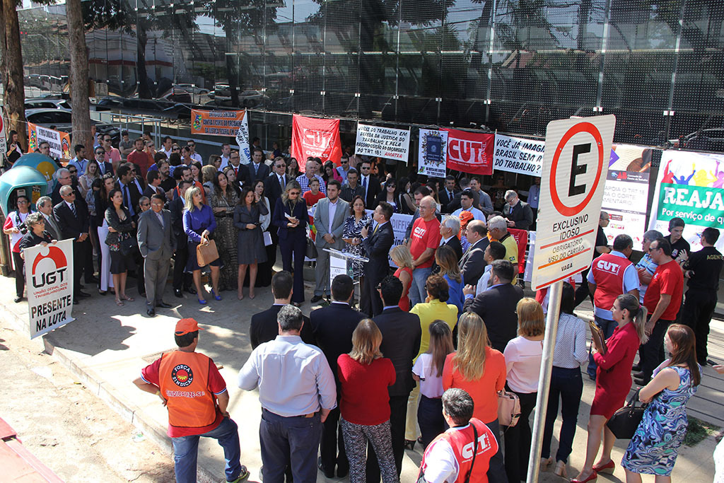 O evento foi conduzido pela presidente da Associação Goiana de Advogados Trabalhistas (Agatra), Arlete Mesquita. O presidente da Comissão de Direito do Trabalho da Ordem dos Advogados do Brasil – Seção Goiás (OAB-GO), Wellington de Bessa, disse que a mobilização de hoje foi o primeiro ato do Fórum, que é formado pela OAB-GO, Agatra, Associação dos Magistrados do Trabalho da 18ª Região (Amatra18), Ministério Público do Trabalho em Goiás (MPT-GO) e Associação Nacional dos Procuradores do Trabalho (ANPT). Além de representantes dessas entidades, o evento contou também com o apoio e a participação efetiva de centrais sindicais que representam trabalhadores. O público presente à manifestação foi estimado pelo chefe de Segurança do TRT18, tenente-coronel Luiz Alberto Bites, em cerca de 350 pessoas.