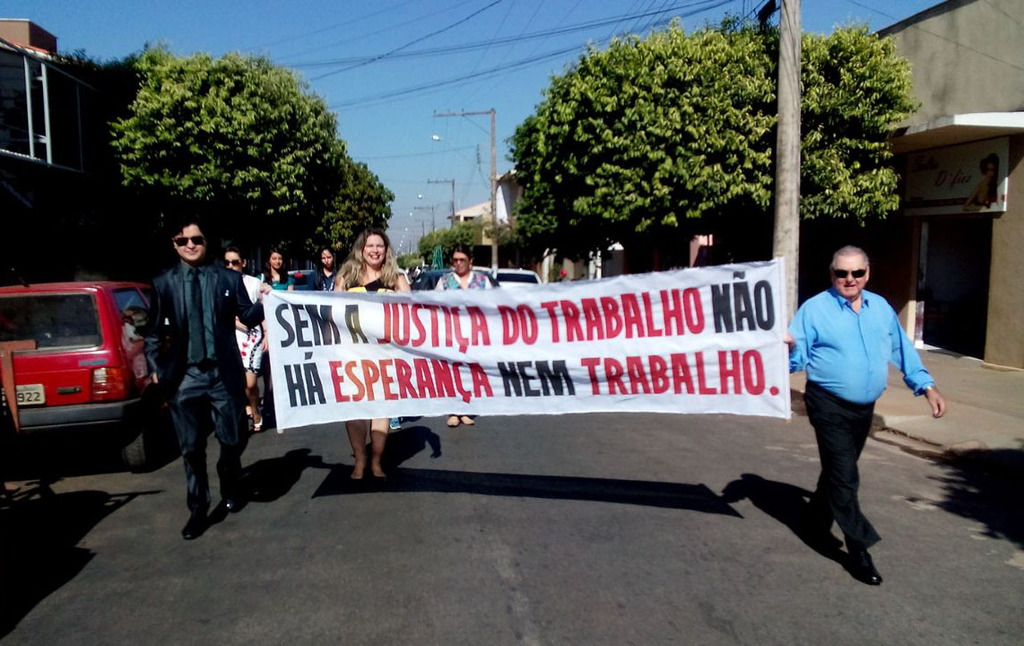Participantes do Ato Público em São Luis de Montes Belos fizeram passeata em prol da Justiça do Trabalho