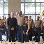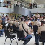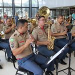 A Banda de música do Corpo de Bombeiros Militar de Goiânia fez uma apresentação no Bazar de Natal beneficente do Tribunal na manhã desta terça-feira, 6/12, no primeiro andar do Fórum Trabalhista de Goiânia. Regida pelo maestro comandante Campos, a banda alegrou os presentes com músicas populares e natalinas. Representando o presidente do Tribunal, desembargador Aldon Taglialegna, o juiz auxiliar da presidência, Renato Hiendlmayer, prestigiou a apresentação.