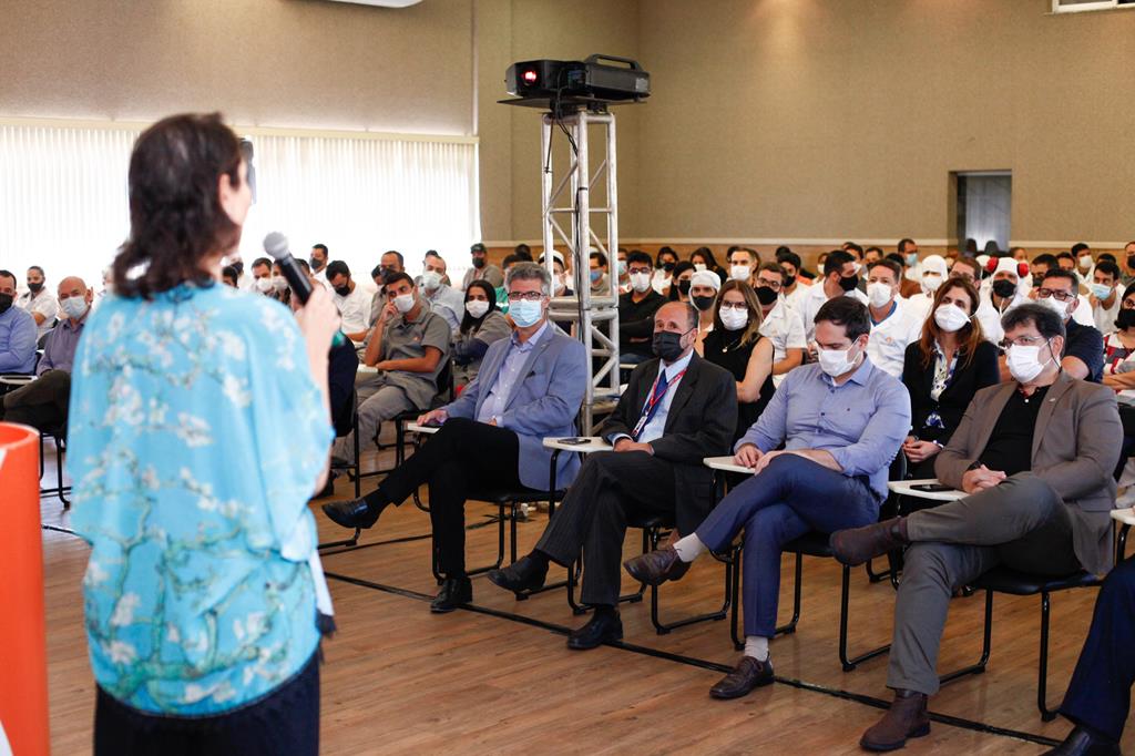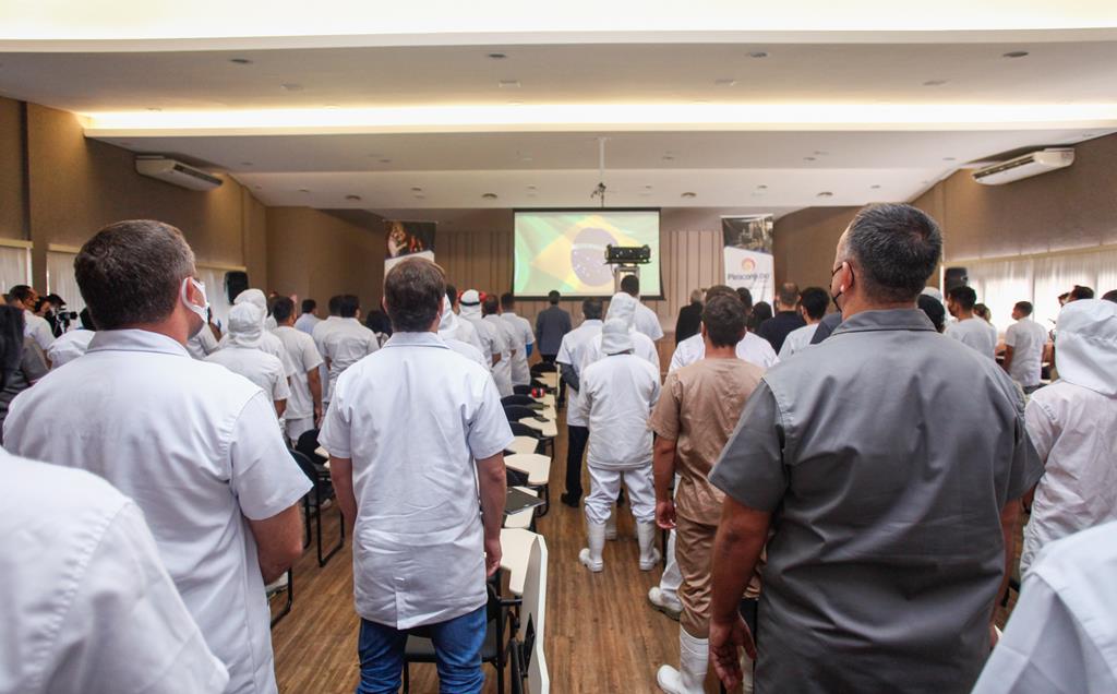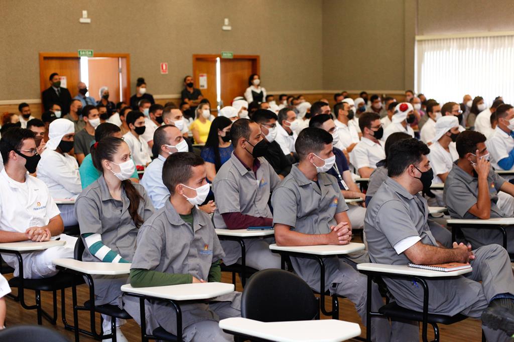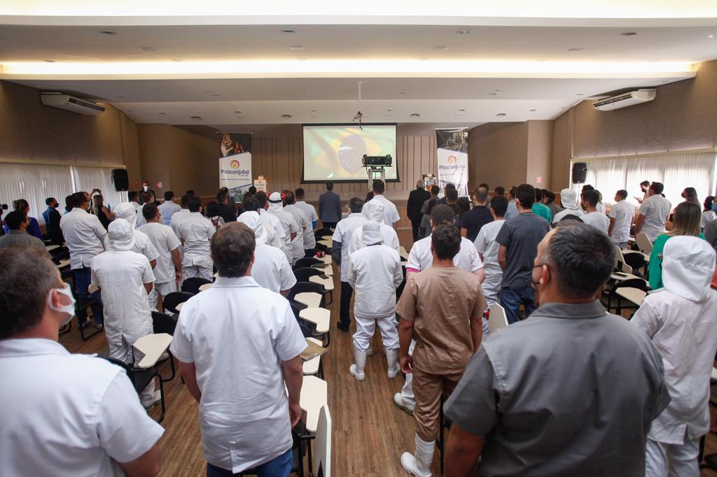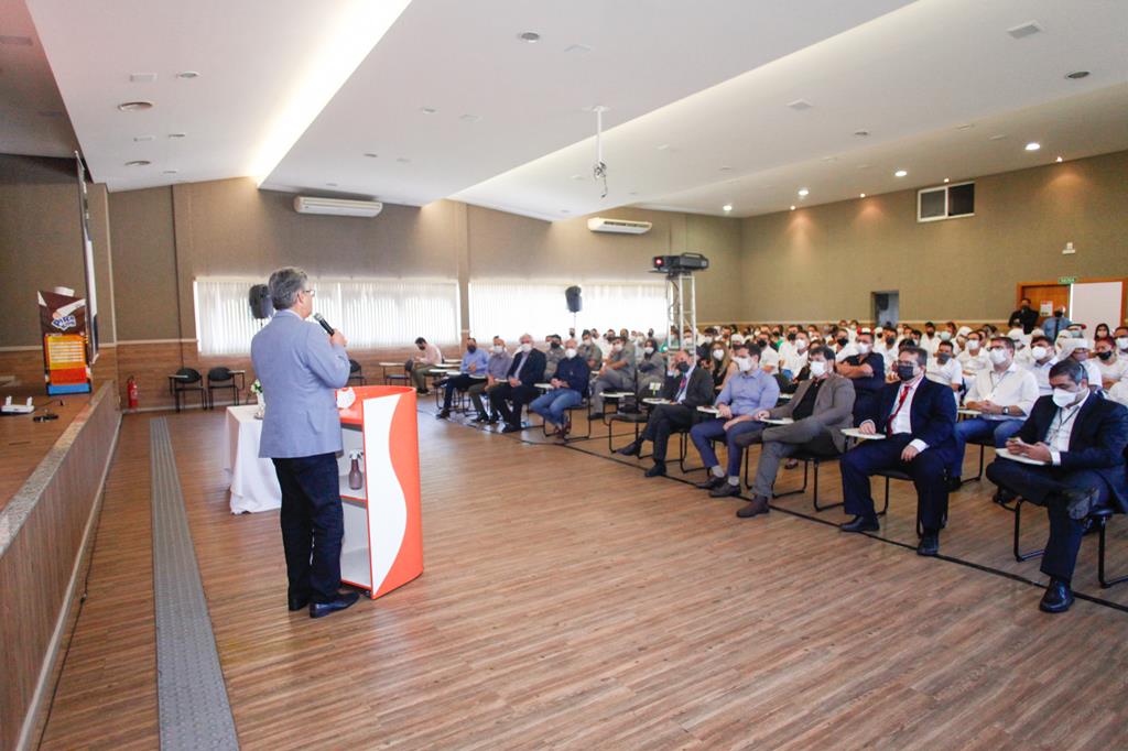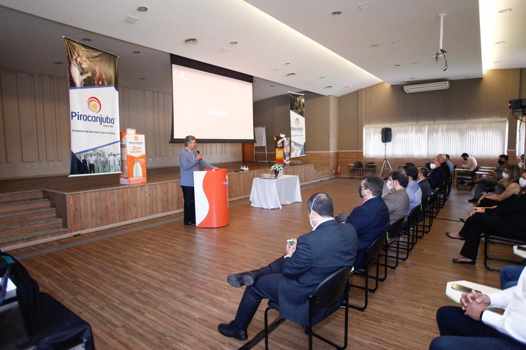 Desembargador Welington Peixoto fala aos trabalhadores da Piracanjuba. A empresa tem sete unidades fabris localizadas em Bela Vista de Goiás (GO), Governador Valadares (MG), Maravilha (SC), Sulina (PR), Araraquara (SP), Três Rios (RJ) e Carazinho (RS), conta com uma capacidade de produção de 6 milhões de litros de leite por dia, além de um portfólio com mais de 180 produtos.