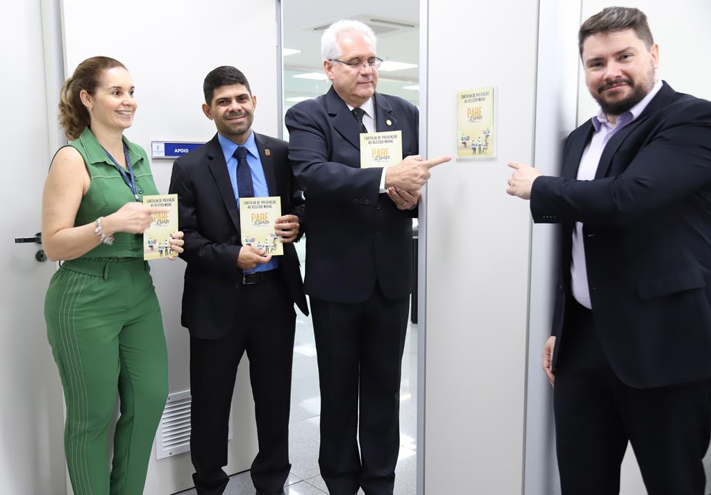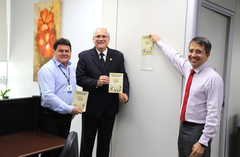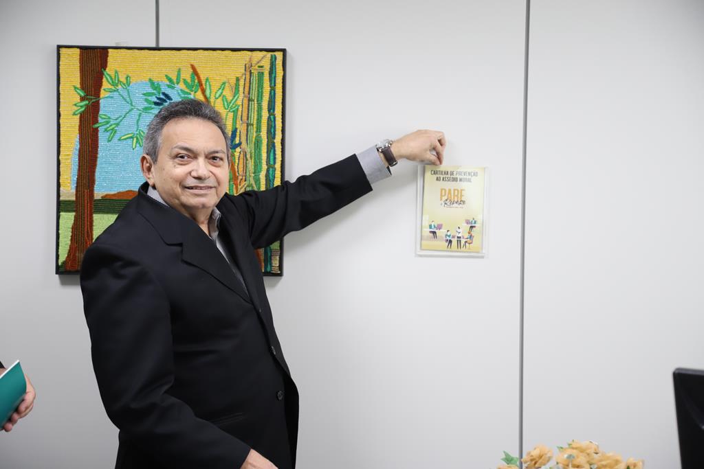 O desembargador Welington Peixoto, coordenador da Comissão de Prevenção e Combate ao Assédio Moral e Sexual no TRT-18, visitou na manhã de terça-feira (25/10) unidades dos blocos novos do Complexo Trabalhista de Goiânia para divulgar e afixar a cartilha que trata do tema. A distribuição da cartilha faz parte da Política de Prevenção e Combate ao Assédio Moral e Sexual no âmbito da Justiça do Trabalho, que recomenda também a fixação em local visível nas unidades judiciárias e administrativas dos regionais trabalhistas.