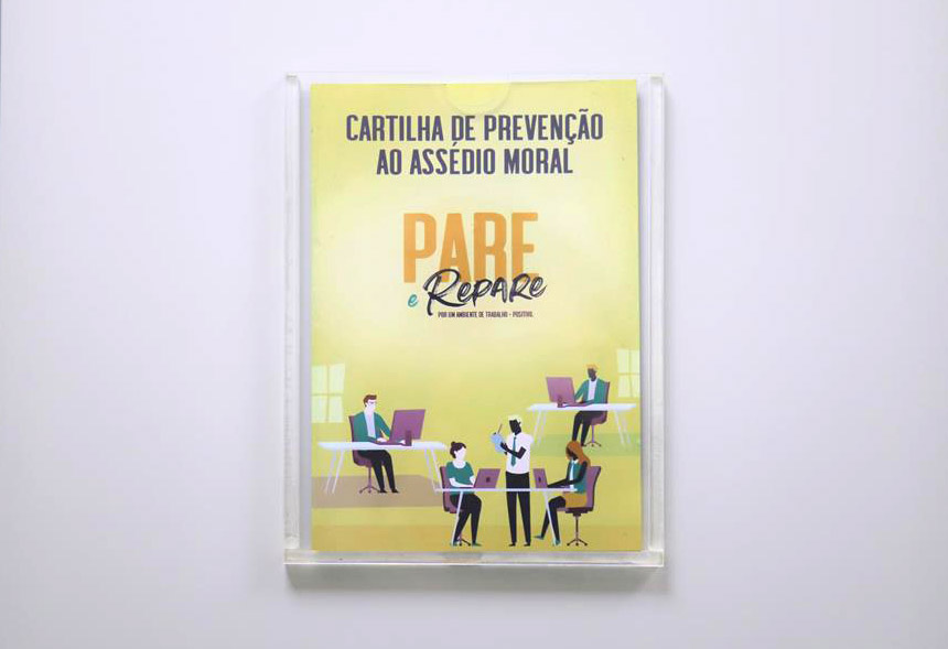 A cartilha faz parte da campanha “Pare e Repare – por um ambiente de trabalho mais positivo” lançada pelo TST em 2019 e que também inclui vídeos educativos sobre o assunto. O impresso expõe de forma clara as situações de assédio moral, os tipos de assédio, suas causas e consequências, como prevenir sua ocorrência e o que fazer quando detectado no ambiente de trabalho.