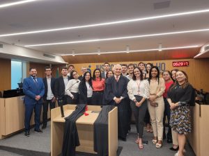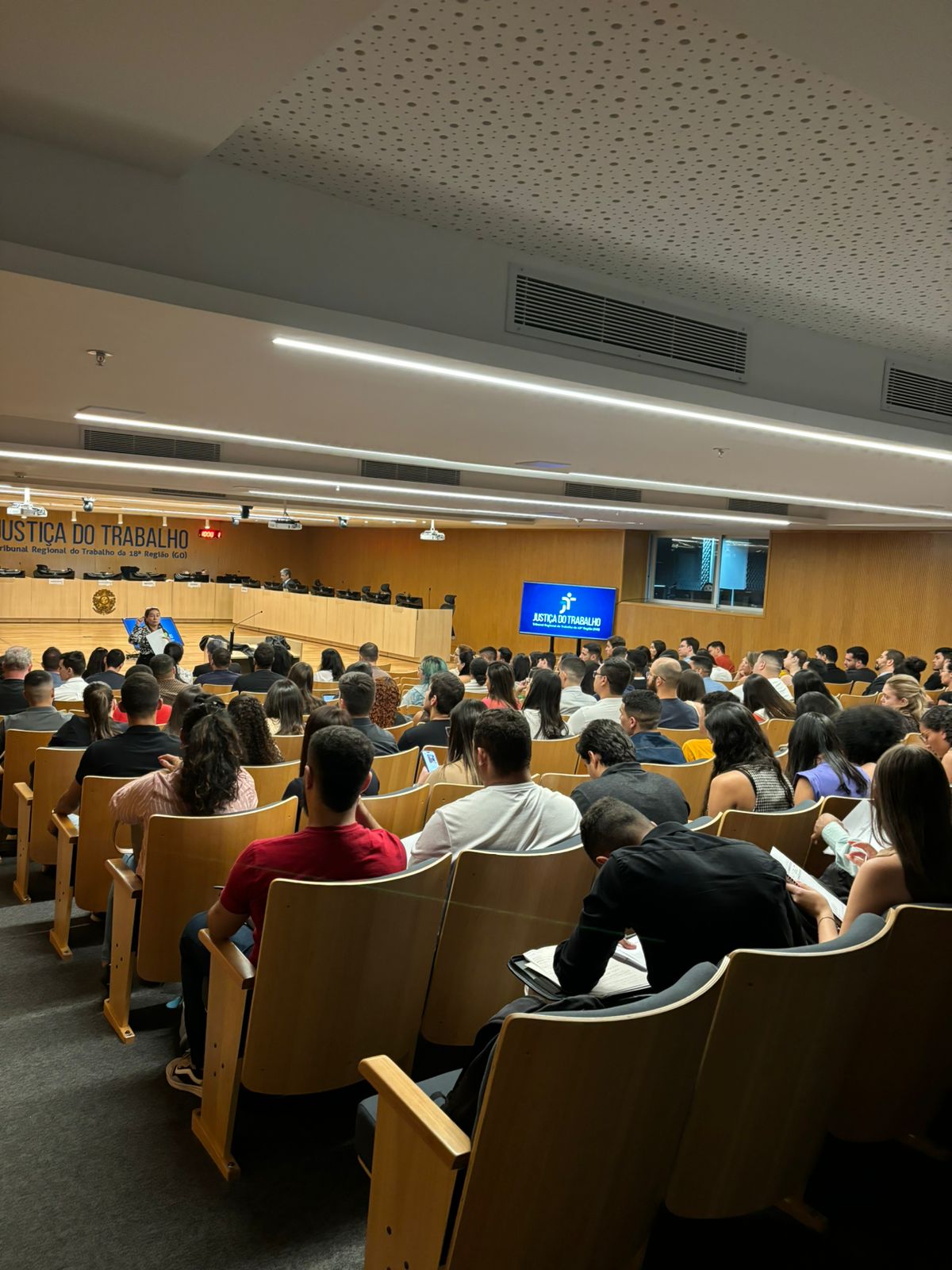 Em seguida, os estudantes acompanharam uma sessão de julgamento da 3ª Turma do Tribunal e puderam ouvir uma breve palavra do desembargador Elvecio Moura. O magistrado conversou com os estudantes de Direito sobre a organização, o funcionamento e a competência da Justiça do Trabalho.