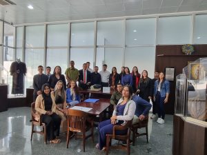 No dia 26 de setembro, foi a vez de oito acadêmicas do curso de Direito da UEG – Campus Uruaçu acompanhadas pelo professor Fabiano Simão Prado visitarem o Centro de Memória. Durante a visita, as estudantes puderam conhecer um pouco mais da história do Judiciário Trabalhista goiano. Elas também participaram de uma audiência de conciliação no Centro Judiciário de Métodos Consensuais de Solução de Disputas (Cejusc) de 1º grau.