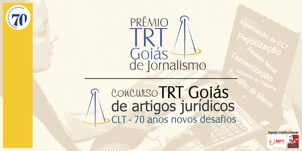 O Tribunal Regional do Trabalho da 18ª Região divulgará amanhã, 10/12, às 20 horas, os vencedores do Prêmio TRT Goiás de Jornalismo. A cerimônia de premiação será realizada no primeiro andar do Fórum Trabalhista de Goiânia na rua T-51, no Setor Bueno. Na ocasião, também serão anunciados os três primeiros colocados no Concurso de Artigos Jurídicos.