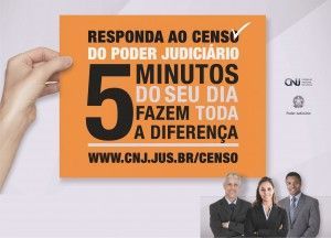 CAMPANHA – Para mobilizar servidores e magistrados a participarem do Censo Nacional do Poder Judiciário, o CNJ criou a campanha “Cinco minutos do seu dia fazem a diferença”. O slogan pretende reforçar que o preenchimento do questionário é rápido e fácil e que as informações prestadas serão muito úteis para saber “quem somos e quantos somos”.