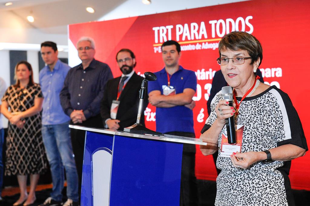 Em seguida, a ministra do Tribunal Superior do Trabalho (TST) Delaíde Arantes parabenizou o TRT-18 pela iniciativa do projeto, lançado em 2017 na gestão do desembargador Breno Medeiros e retomado pelo atual presidente do Tribunal, desembargador Paulo Pimenta. A ministra, que é goiana e ocupa vaga oriunda da advocacia, destacou a importância desta edição especial em um momento em que é tão necessário fortalecer a Justiça trabalhista. “Os advogados trabalhistas precisam resistir e vamos todos resistir até o fim para que seja mantida a Justiça do Trabalho. O tempo é de união, de ninguém soltar a mão de ninguém”, concluiu Delaíde.