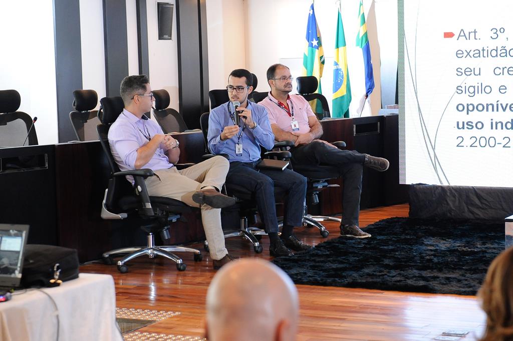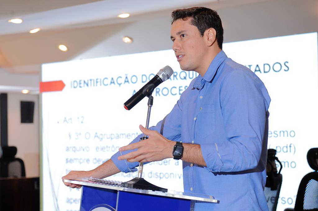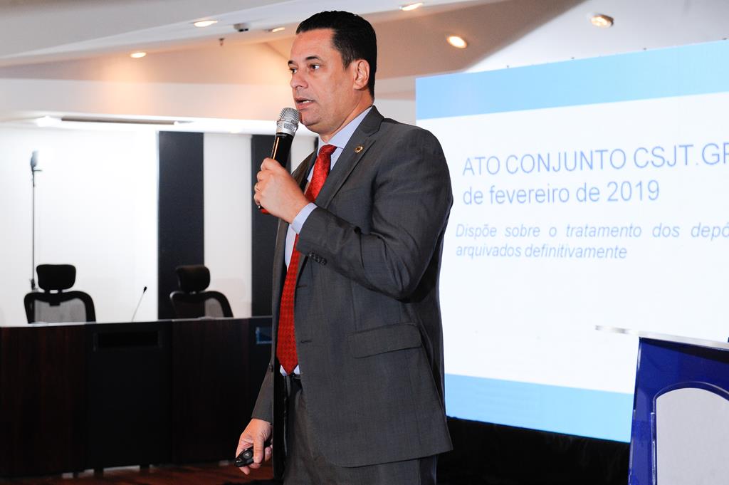 Em seguida, o secretário-geral Judiciário, Cleber Pires, falou sobre os sistemas de alvará eletrônico que funcionam interligados com a Caixa Econômica Federal (SIB) e com o Banco do Brasil (SISCONDJ), sendo este último uma novidade apresentada durante o evento.