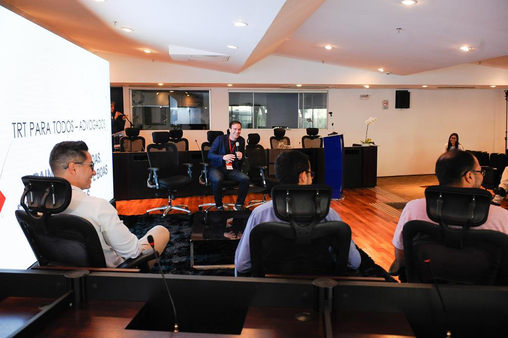O diretor da STI, Murilo de Barros, apresentou uma novidade aos advogados, o Escritório Digital. O projeto conduzido pelo CNJ deverá ser implantado no TRT-18. O sistema ainda está em fase de homologação e tem como propósito integrar os sistemas processuais dos tribunais brasileiros e permitir ao usuário centralizar em um único endereço eletrônico a tramitação dos processos de seu interesse no Judiciário. A ideia é que o advogado não precise entrar no PJe ou nos outros sistemas de controle processual dos diversos tribunais.