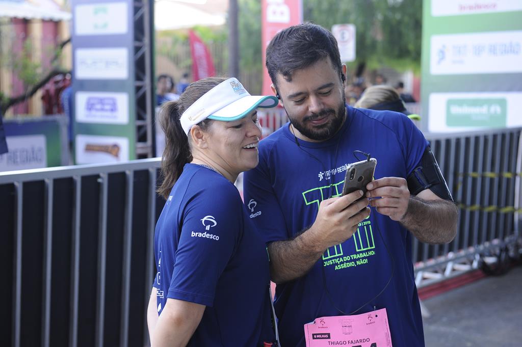 A Corrida contou, novamente, com muitos casais participando de mãos dadas em todas as categorias. Cláudia Santos, servidora da 8ª Vara do Trabalho de Goiânia, e Luciano Lima, da 1ª VT, correram as 3 Milhas e não deixaram de lembrar, ao final da prova, a importância de o TRT-18 apoiar e incentivar um evento tão especial, ainda mais este ano, com um lema de combate ao assédio: “Devemos, no âmbito do nosso Tribunal, abordar e debater o tema do assédio, é uma causa que deve ser defendida e propagada”, ressaltou Luciano. Cláudia destacou, também, que a filha do casal, Clara, de 1 ano e 9 meses, em breve participará da Corridinha: “Incentivamos a Clarinha desde cedo, ela já compreende a importância de uma vida saudável e ficou em casa hoje torcendo por nós”.