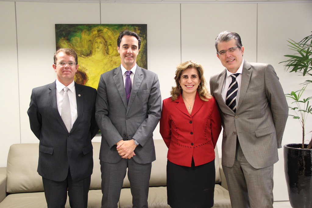A coordenadora nacional do PJe, desembargadora Ana Paula Pellegrina Lockmann, se reuniu com o Secretário de Tecnologia da Informação do Conselho Superior da Justiça do Trabalho (CSJT) Cláudio Feijó, o procurador do Ministério Público do Trabalho (MPT) Luís Fabiano Assis, e o diretor da STI do TRT Goiás, Humberto Ayres, na manhã desta quarta-feira, 29/5, para apresentação do estágio de desenvolvimento das ações para implantação do Modelo Nacional de Interoperabilidade (MNI), que vai integrar o PJE ao sistema do MPT. Também participaram da reunião o técnico do MPT Marco Arenhart e os técnicos da STI Fabiano Oliveira e Francisco Mendes.