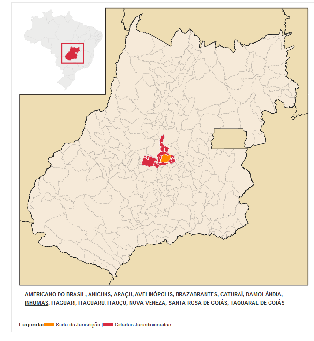 O município de Inhumas fica às margens da GO-070 e compõe a Região Metropolitana de Goiânia. A Vara do Trabalho de Inhumas possui jurisdição sobre os municípios de Americano do Brasil, Anicuns, Araçu, Avelinópolis, Brazabrantes, Caturaí, Damolândia, Inhumas (sede da jurisdição), Itaguari, Itaguaru, Itauçu, Nova Veneza, Santa Rosa de Goiás e Taquaral de Goiás. O município de Itaberaí foi transferido para a jurisdição da Vara do Trabalho de Goiás, por meio da Resolução Administrativa nº 82/2017. Considerados os dados do Instituto Brasileiro de Geografia e Estatística – IBGE, desde 2010 houve um acréscimo populacional no município da ordem de 7,64% (de 48.246 para 51.932 habitantes em 2016). A agricultura desempenha importante papel na geração de riquezas do município, entretanto, a partir da década de 70, houve o deslocamento da economia para a idade, com a chegada das primeiras indústrias. A principal atividade industrial do município relaciona-se às indústrias de confecção (cama, mesa e banho), com importante participação das cerâmicas, granjas, dos curtumes, e ultimamente, da indústria sucroenergética. Segundo as estatísticas do Cadastro Central de Empresas, referentes ao exercício de 2015, o município possui 1.447 empresas instaladas atuantes, com pessoal ocupado assalariado da ordem de 8.851 pessoas, com salário médio mensal de 1,7 salários mínimos. Cerca de 93% da população vive na área urbana do município.