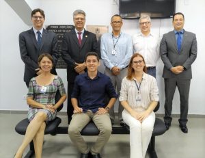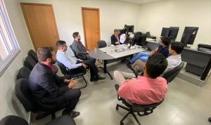 Corregedor conversa com o juiz auxiliar Lucas Miranda Sá e com a diretora do Posto Avançado de Iporá, Lorrane Melo