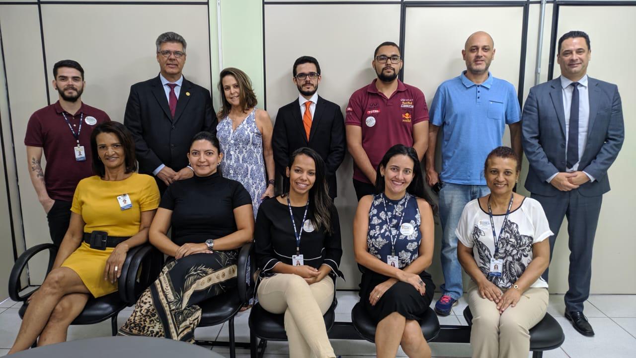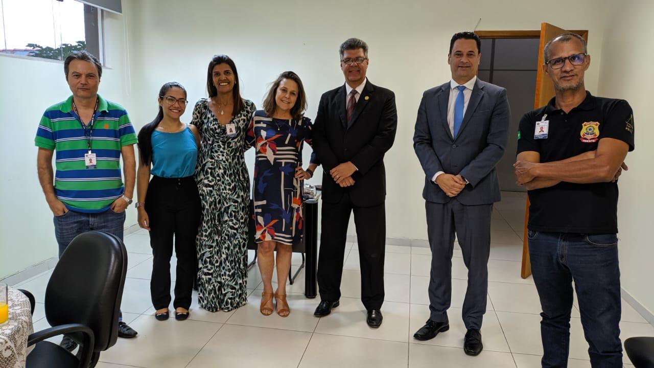Equipe da VT de Uruaçu com o desembargador-corregedor, Daniel Viana, e o diretor da Secretaria de Corregedoria Regional, Marcelo Marques