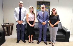 A reunião contou ainda com a presença do diretor da Hanker Marketing e Eventos, Bernard Moura, Marcela Santos, diretora do Grupo Odilon Santos, e Adnólia Aires, chefe do Núcleo de Relações Institucionais e Cerimonial do TRT