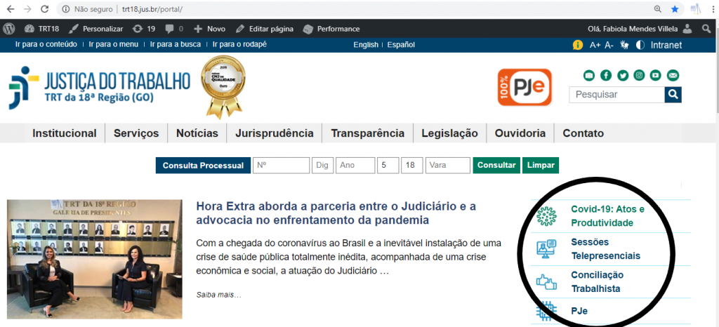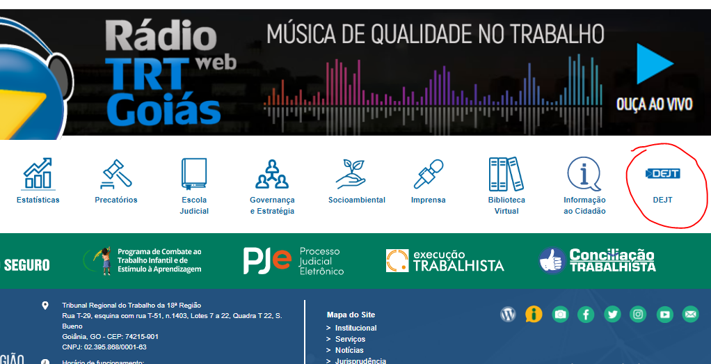 DEJT tem novo atalho no site do TRT-18. Veja também outras mudanças.