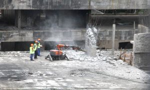 A empresa Concretiza, responsável pela construção do Complexo Trabalhista de Goiânia, iniciou a demolição das estruturas dos blocos 1 e 2, atingidos pelo incêndio ocorrido no canteiro de obras do Complexo em outubro de 2015, após o desembargo da Superintendência Regional do Trabalho e Emprego. Foram meses de estudo para encontrar a melhor forma de realizar a retirada do concreto e estrutrura de metal que perderam a resistência com a ação do fogo, segundo laudo técnico.