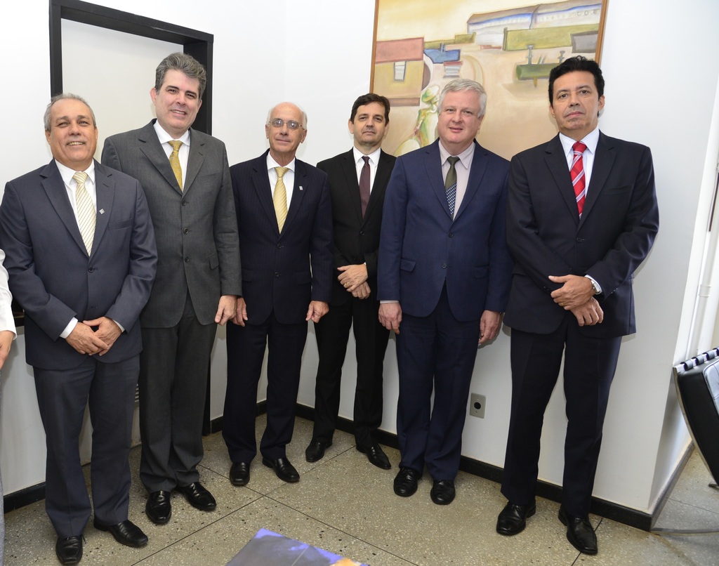 _UFG6656A Universidade Federal de Goiás aceitou a solicitação do TRT Goiás para realizar a perícia nas obras de ampliação do Tribunal que foram atingidas pelo incêndio ocorrido no dia 3 de outubro. O presidente do TRT, desembargador Aldon Taglialegna, foi pessoalmente, na tarde desta quarta-feira (14/10), com uma comitiva, entregar um ofício ao Reitor da UFG, Professor Orlando Afonso Valle do Amaral, solicitando apoio para a realização de perícia nas obras de ampliação do Tribunal.