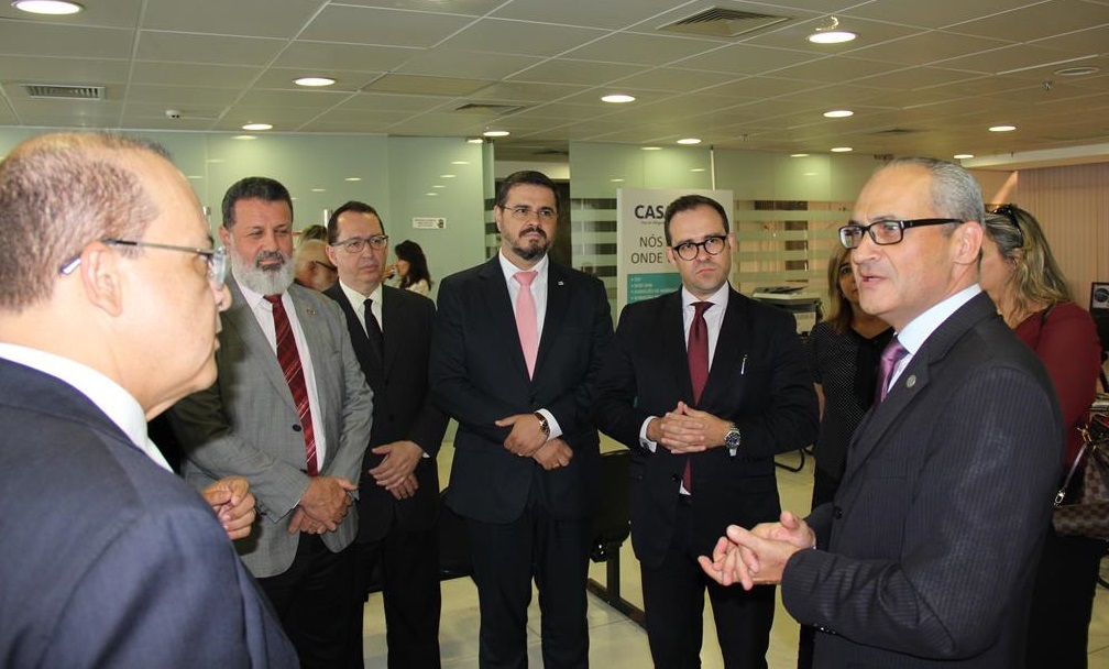 Vice-presidente e corregedor do Tribunal, desembargador Paulo Pimenta (à direita), em conversa com a comitiva da OAB