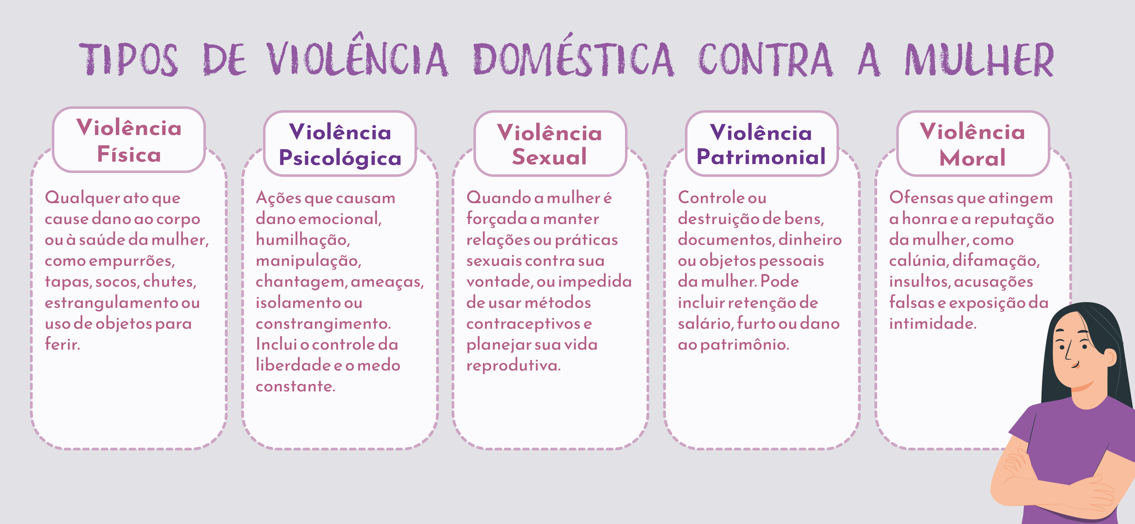 A violência doméstica é mais que agressão física, ela pode ser também psicológica, moral, sexual ou patrimonial. O controle sobre o que a mulher veste, com quem fala ou quanto gasta, por exemplo, também é uma forma de dominação que precisa ser enfrentada. “A Lei Maria da Penha define diversas formas de violência contra a mulher. A violência psicológica, por exemplo, envolve humilhações, controle, rebaixamento da autoestima e isolamento da mulher de sua rede de apoio. Já a violência patrimonial ocorre quando há apropriação de bens ou imposição de dívidas. Todas essas formas, muitas vezes veladas, trazem prejuízos profundos à saúde mental das vítimas”, explicou a psicóloga Gabriela Castro, do TRT-GO.