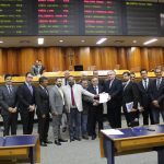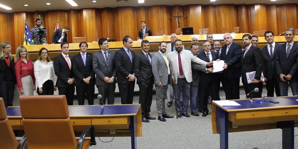IMG_3406 (Copy)A Câmara dos Vereadores de Goiânia assinou uma moção de apoio à aprovação do Projeto de Lei nº 012/2016 (CN), que abre crédito suplementar em favor de vários órgãos do Judiciário, incluindo o TRT18 (Goiás). O presidente da Câmara, vereador Anselmo Pereira, entregou uma cópia da moção ao desembargador Welington Peixoto, que estava representando o presidente do TRT18, desembargador Aldon Taglialegna, durante a audiência pública realizada na manhã desta quinta-feira (4/8) no plenário da Câmara Municipal de Goiânia.