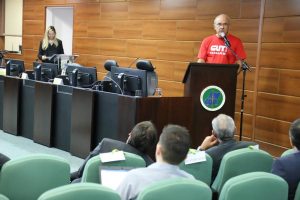 O presidente da Central Única dos Trabalhadores (CUT) em Goiás, Mauro Rubem, afirmou que a CUT sempre tem defendido o diálogo e a construção civilizada de uma outra sociedade. Ele considerou extremamente importante os dados apresentados sobre a realidade da Justiça do Trabalho. “Nós entendemos que a transparência que se coloca é importante para o desenvolvimento do país. Porque a Justiça do Trabalho existe para a sociedade, para tentar equilibrar a relação capital-trabalho”, afirmou. Mauro Rubem ainda criticou a reforma trabalhista, que, segundo ele, representa uma regressão do país e mais desemprego. Ele destacou que o trabalhador perdeu muitos direitos legais duramente reconhecidos, citando como exemplos a situação de o trabalhador agora de ter que pagar caso perca a ação trabalhista e o enfraquecimento dos sindicatos que protegem os trabalhadores no atual governo federal.