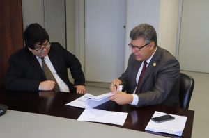 Juiz Ronie Carlos (à esquerda) em reunião com o desembargador-corregedor