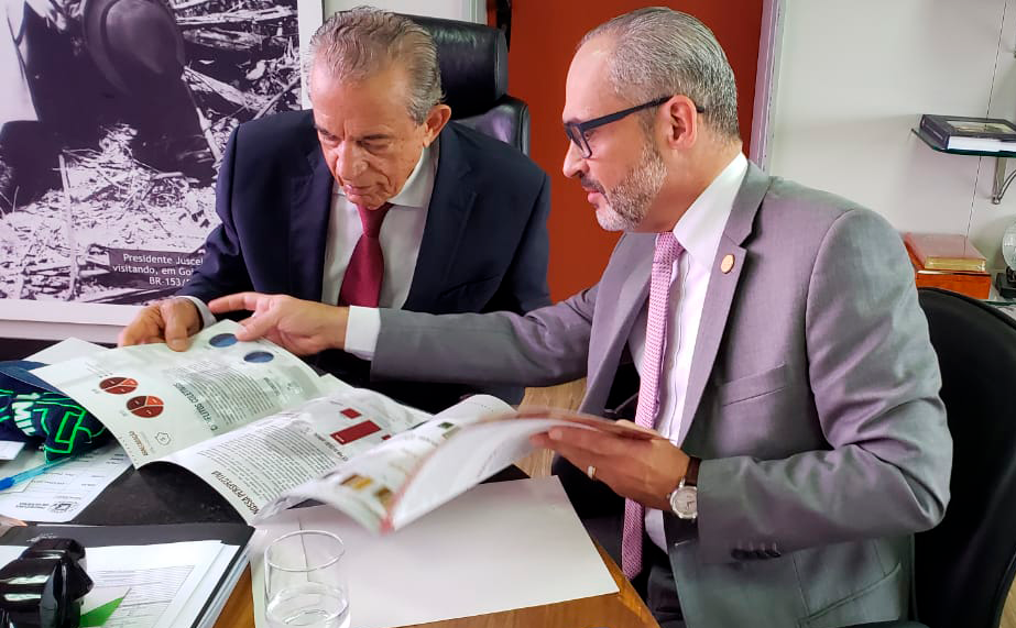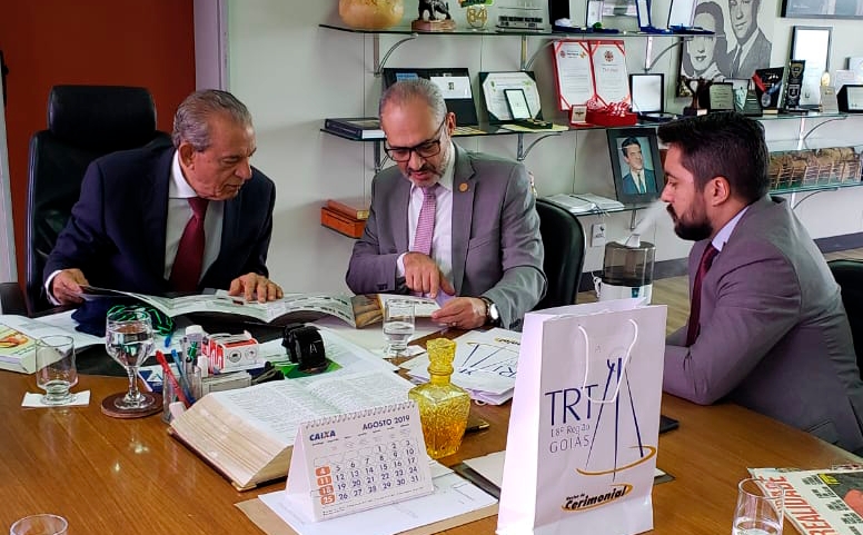 Em visita institucional na manhã desta sexta-feira, 27/9, o presidente do TRT de Goiás, desembargador Paulo Pimenta, apresentou ao prefeito de Goiânia, Íris Rezende, encarte com o balanço das atividades da Justiça do Trabalho goiana, contendo estatísticas de ações julgadas, índices de produtividade e informações sobre a atuação do órgão. Na oportunidade, o desembargador também convidou o prefeito para a próxima edição da Corrida de rua TRT Goiás, que será realizada no dia 24 de novembro e tem como tema o combate ao assédio moral no ambiente laboral.