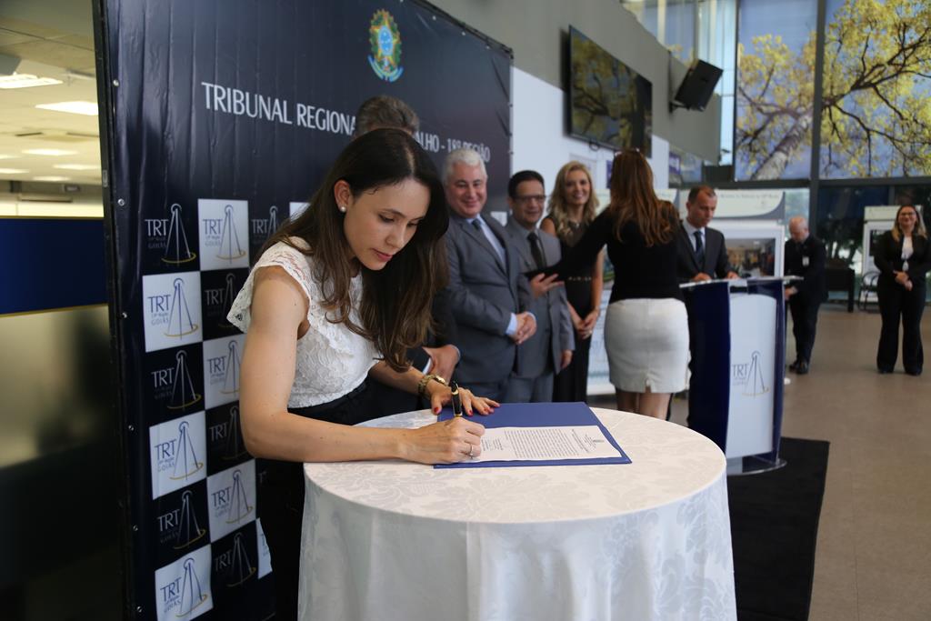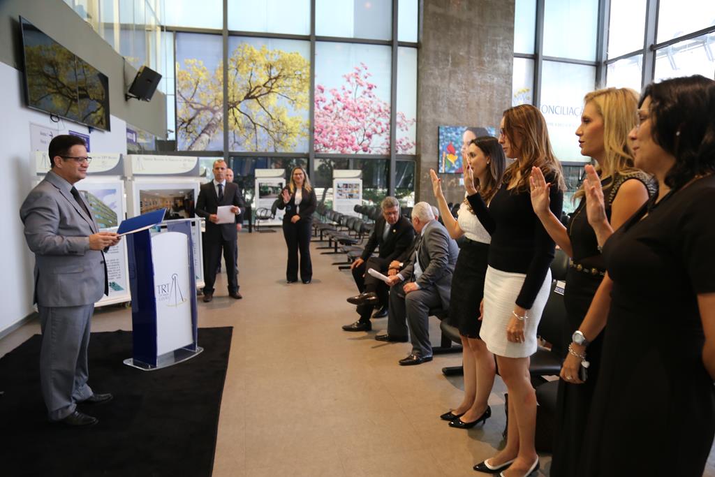 O Conselho Deliberativo, do Centro Judiciário de Métodos Consensuais de Solução de Disputas de Goiânia – Cejusc Goiânia, conta agora com novos membros. Em cerimônia realizada às 16 horas desta quarta-feira (4/11), o desembargador Daniel Viana Júnior, vice-presidente do TRT-18 e coordenador do NUPEMEC (Núcleo Permanente de Métodos Consensuais de Solução de Disputas), deu posse aos juízes Luiz Eduardo Paraguassu e Narayana Hannas, na condição de representantes dos juízes titulares, Ceumara Soares e Viviane Freitas, como representantes dos juízes substitutos, e Wanda Lúcia Ramos como suplente dos juízes titulares.