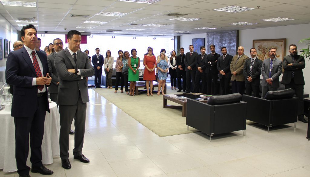Na sequência, o presidente do TRT 18 deu posse coletiva a doze servidores no cargo de assessor da Assessoria de Governança Corporativa, unidade recém-criada vinculada à Presidência. A mudança na estrutura administrativa atende a determinação da Resolução 219 do Conselho Nacional de Justiça, que normatiza a distribuição de servidores e de funções de confiança nos órgãos do Poder Judiciário de primeiro e segundo graus.