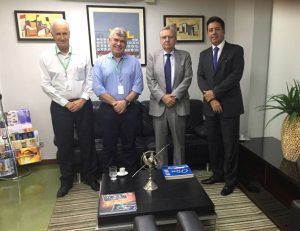 O presidente do TRT18, desembargador Platon Teixeira Filho, acompanhado do diretor-geral Ricardo Lucena, visitou a diretoria da Enel Distribuição Goiás (antiga Celg) nesta terça-feira, 20/03, às 14h30, para solicitar que a empresa faça a ligação do ramal que alimentará a rede de energia da futura sede da nova Vara do Trabalho de Palmeiras de Goiás. Na ocasião, o desembargador informou que as instalações da nova sede estão praticamente prontas e a ligação da rede de energia adiantará a data da inauguração prevista para o mês de maio.