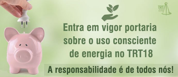 Com o objetivo de reduzir o consumo energético, visando uso sustentável do recurso natural e redução de despesas, o presidente do TRT18, desembargador Aldon Taglialegna, assinou a portaria 312/215. O documento, que já está em vigor, orienta o público interno para o uso correto de equipamentos sem desperdício de energia.
