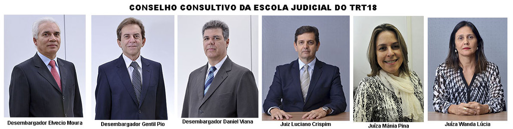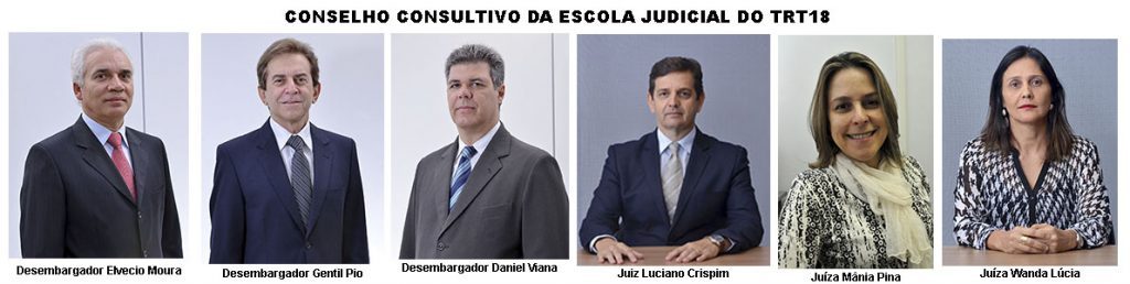 O diretor da Escola Judicial (EJ), desembargador Elvecio Moura, deu posse aos membros do Conselho Consultivo para o biênio 2017-2019 na manhã desta sexta-feira, 10/3. Na ocasião foram empossados como conselheiros o desembargador Gentil Pio de Oliveira, ouvidor do TRT18, que tem assento nato no Conselho; o desembargador Daniel Viana e os juízes Luciano Crispim e Mânia Nascimento Pina. Também foi empossada como coordenadora pedagógica da Escola a juíza Wanda Lúcia Ramos. Já para o cargo de vice-diretor da EJ, foi nomeado o desembargador Aldon do Vale Taglialegna.