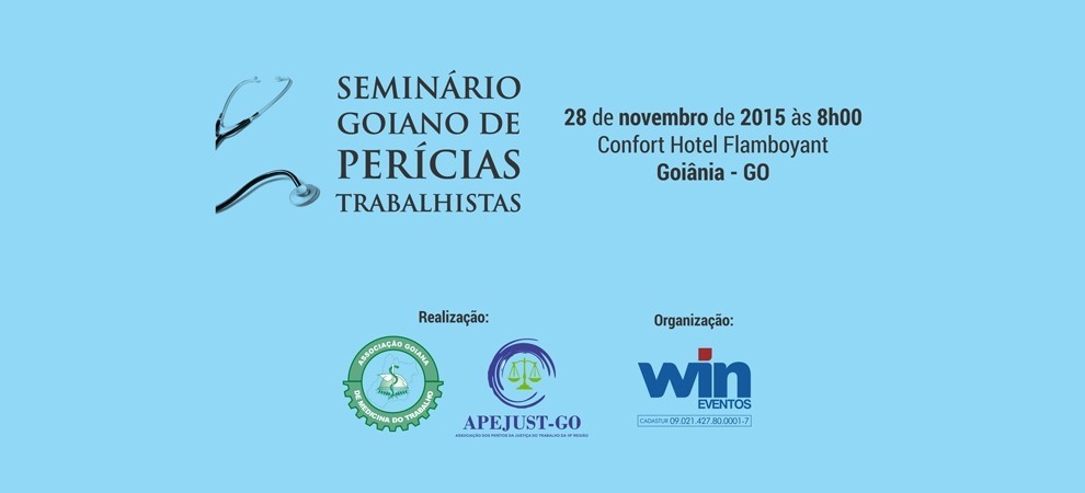 seminario_goiano_pericias_trabalhistasA Escola Judicial do Tribunal Regional do Trabalho da 18ª Região vai realizar o “SEMINÁRIO GOIANO SOBRE PERÍCIAS TRABALHISTAS”. O evento vai acontecer no Confort Hotel Flamboyant, no dia 28 de novembro de 2015, às 8 horas . As inscrições são gratuitas para magistrados e servidores do TRT18 e podem ser feitas até às 18 horas desta quinta-feira (26/11) pelo link: