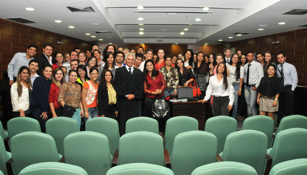 O desembargador Elvecio Moura recebeu os estudantes de direito da Faculdade Anhanguera de Anápolis e da Universo. Como o número de alunos era grande, a sessão da 3ª Turma foi transferida para o auditório do Tribunal Pleno