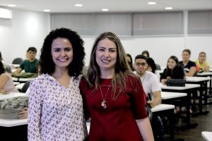 A professora e ex-estagiária do TRT-GO, Flávia Martins, com a servidora Márcia Bueno