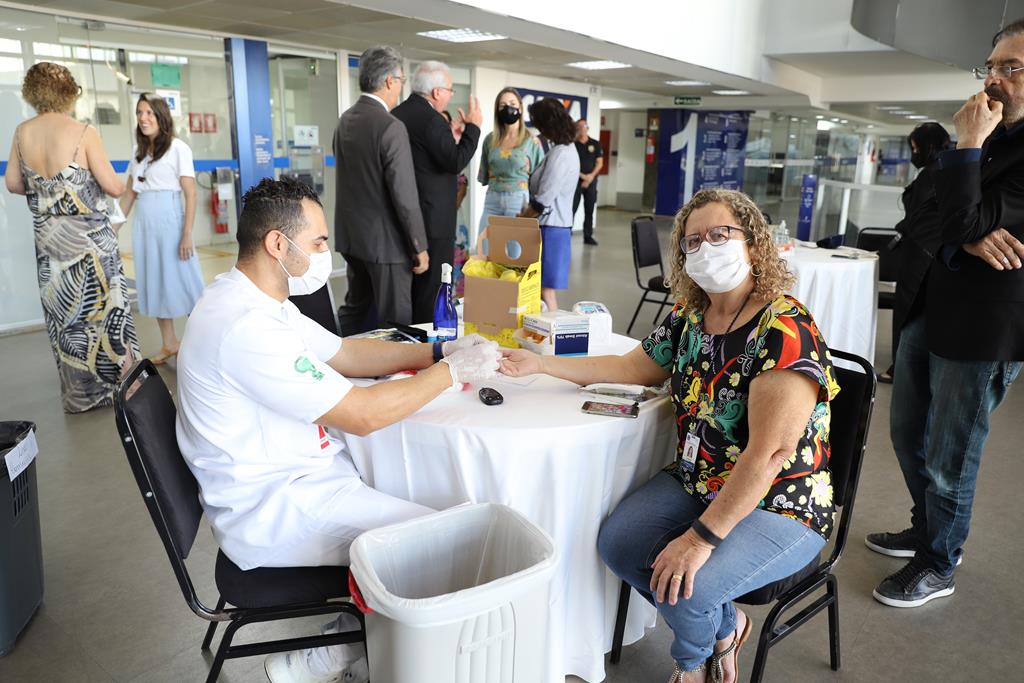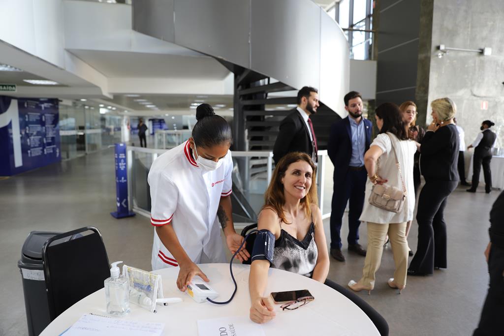 A Gerência de Saúde do TRT-18 promoveu também a aferição de pressão arterial e glicemia em parceira com a rede de farmácias Drogasil.